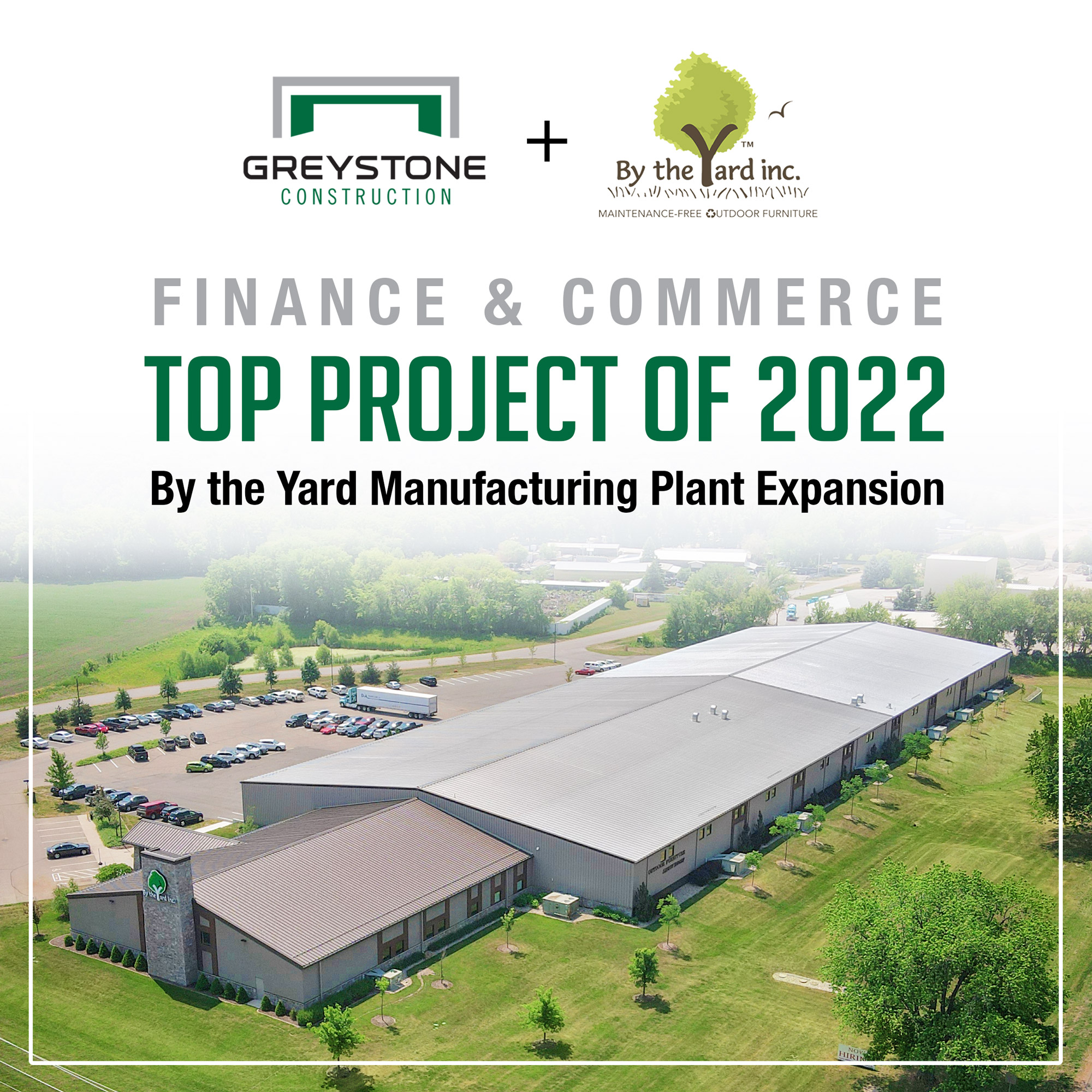 Congratulations to the By the Yard Manufacturing Plant Expansion project team for earning a Top Project Award from Finance & Commerce! A big thank you to By the Yard - Outdoor Furniture for placing their trust in the Greystone team these past 20+ years -- we are honored to be their chosen construction partner through 128,000+ SF of expansions.