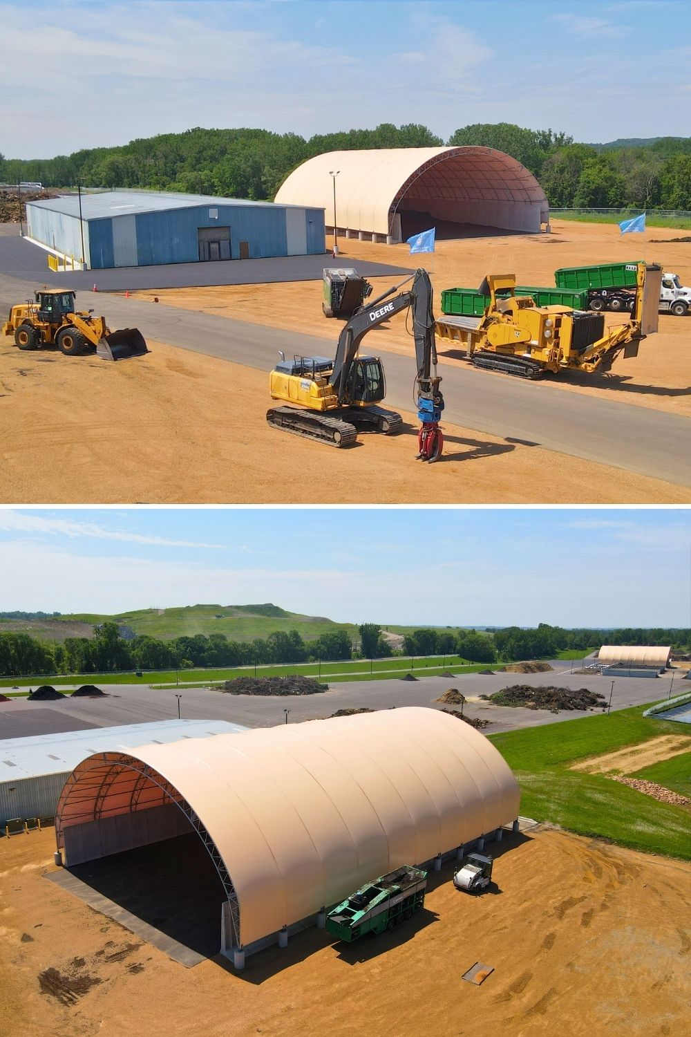 Our Fabric Division team relocated and repurposed an existing fabric structure we originally built for SMSC years ago, re-installing it as two separate fabric buildings: a 100'x160' storage building and a 100'x144' tipping building. It’s a great example of the sustainability and long-term value of the fabric buildings we construct.
