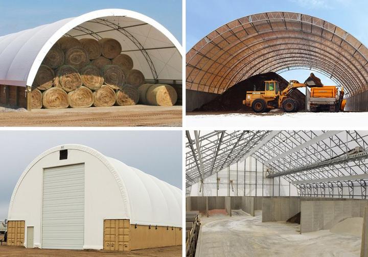Hoop buildings (also known as canvas buildings, tarp buildings, and clear span buildings) can be customized with ventilation, interior layouts, door and end wall options, HVAC, electrical, lighting, conveyer systems, fabric covers and colors, and more. Hoop buildings are ideal for a wide variety of applications in the commercial, industrial, and agribusiness industries, such as: